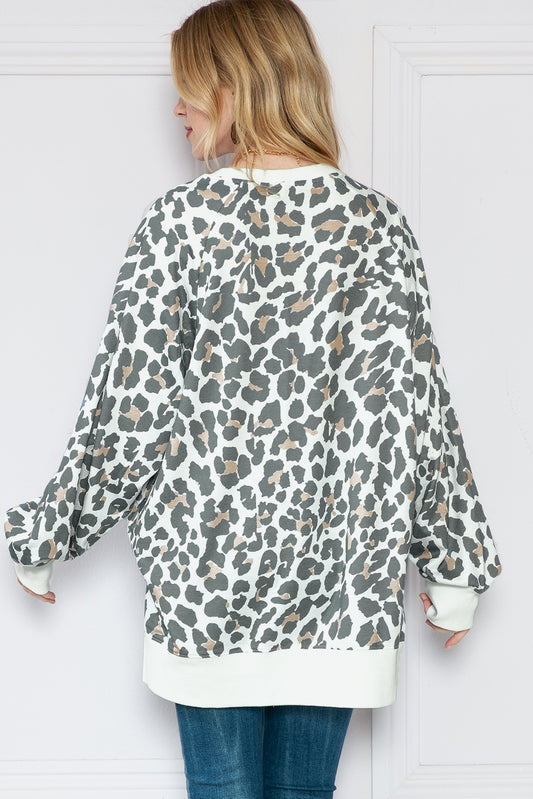Leopard Print V Neck Drop Shoulder Long Sleeve Top