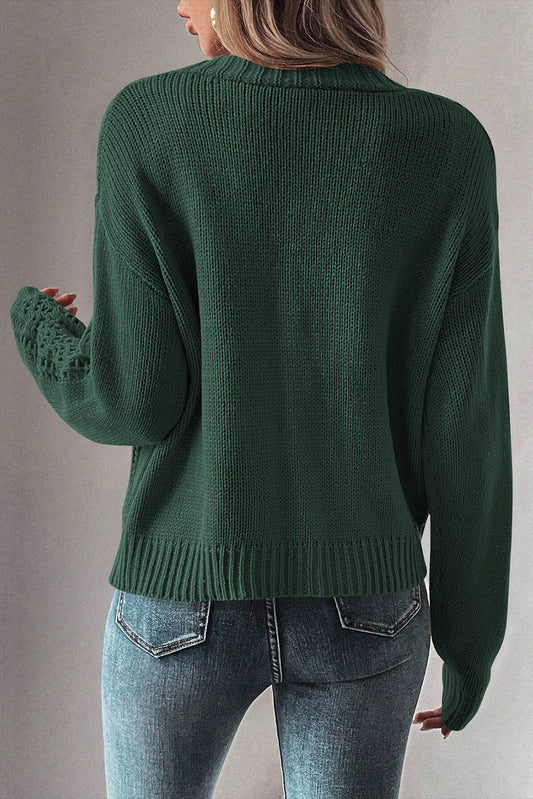 Green Hollow Knit Drop Shoulder Cardigan