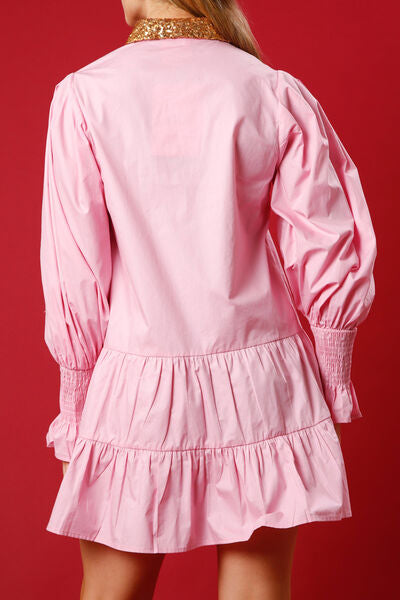 Full Size Nutcracker Sequin Lantern Sleeve Tiered Dress