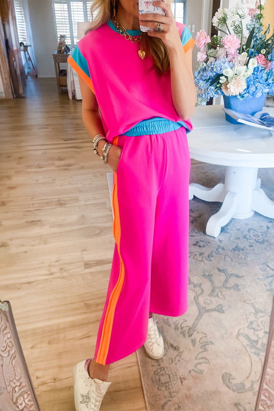 Strawberry Pink Cap Sleeve Tee and Wide Leg Pants Set