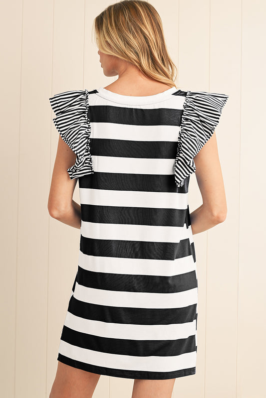 Sky Blue Stripe Ruffle Sleeve T-shirt Dress