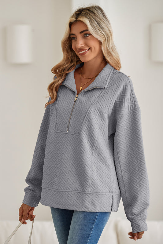 Gray Zip Collar Colorblock Side Slits Sweatshirt