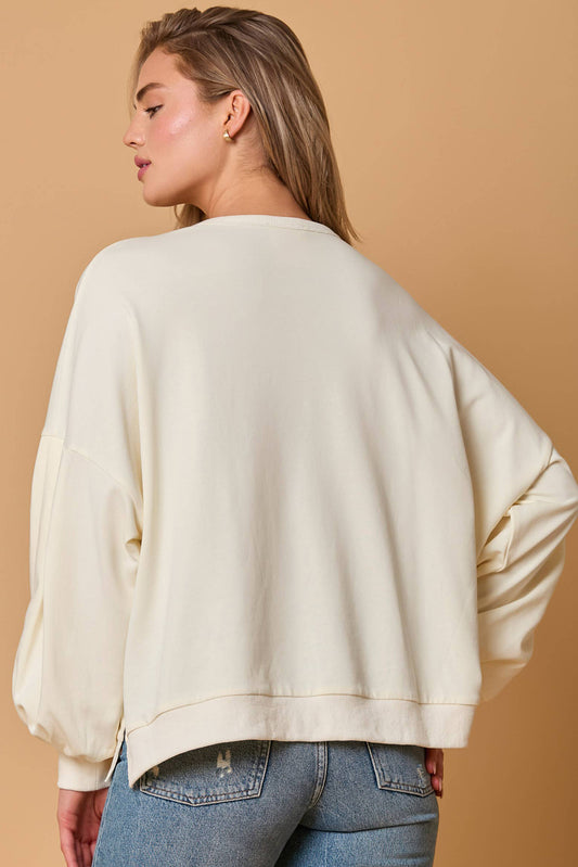 White Tinsel Game Day Drop Shoulder Sweatshirt