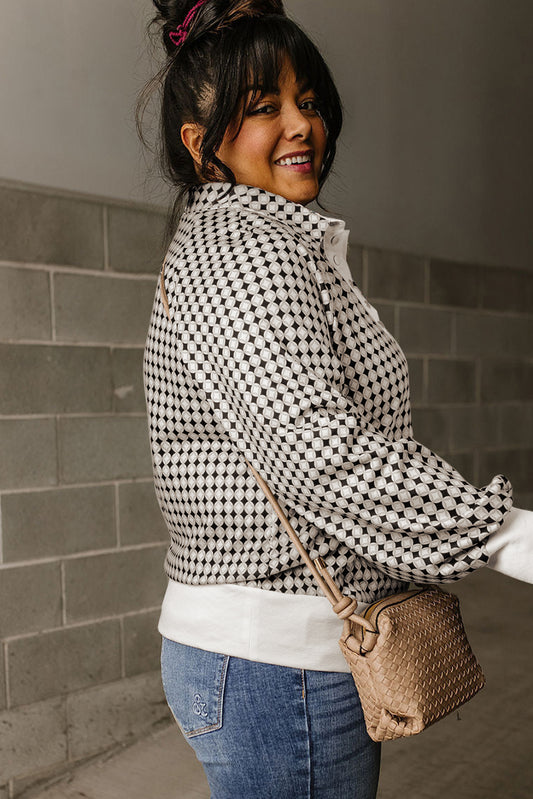 Black Plus Size Two Tone Contrast Collared Pullover Sweatshirt