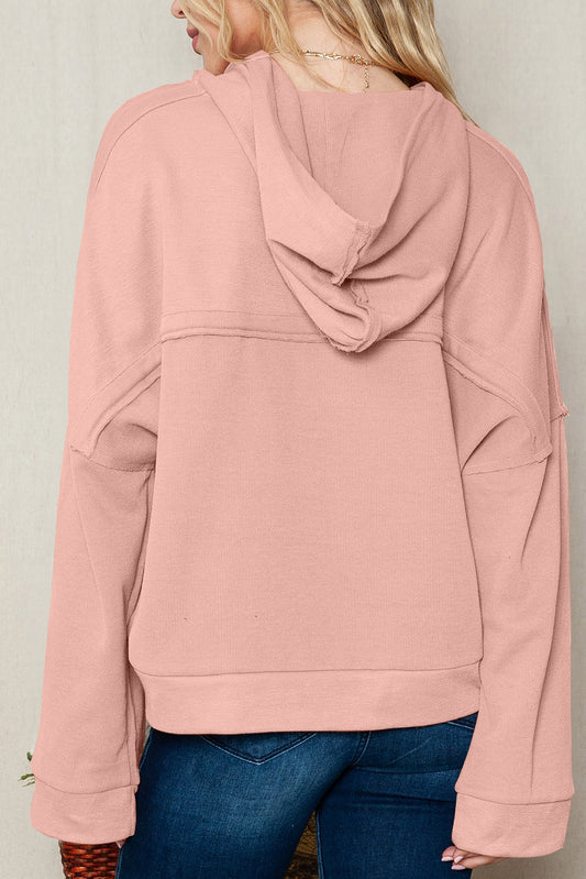 Hot Pink Slouchy Drop Shoulder Henley Sweatshirt