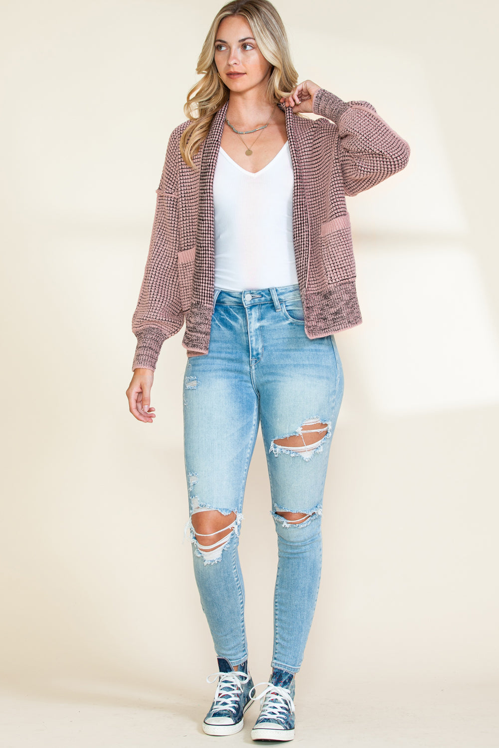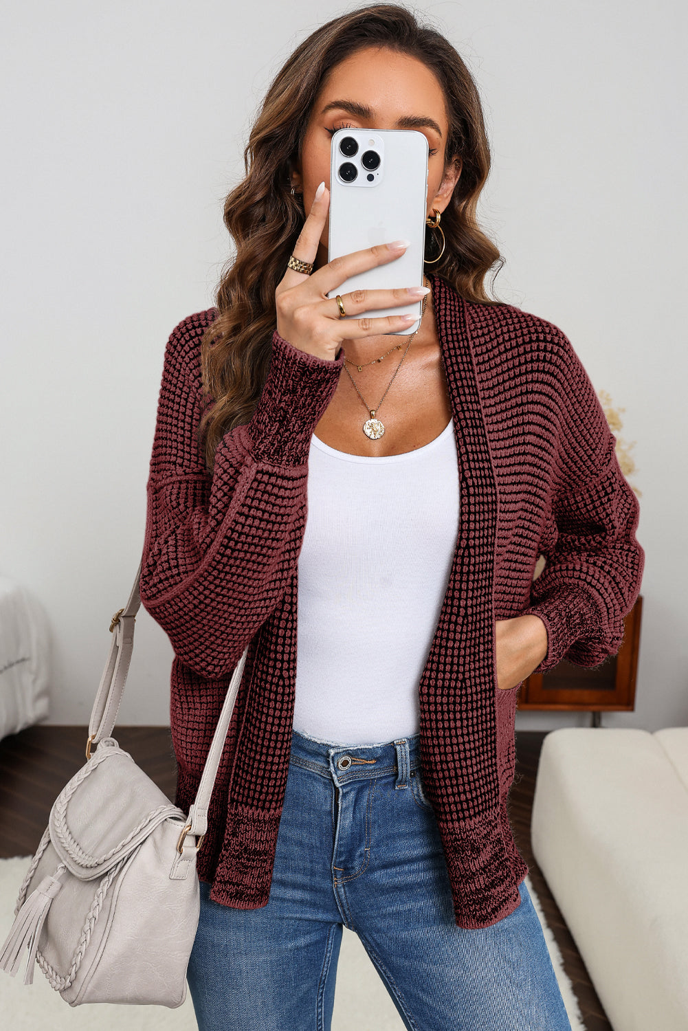 Textural Elegance: Elevate your style with the visually appealing textural element of this chunky knit cardigan, ensuring a fashionable touch to your outfit.