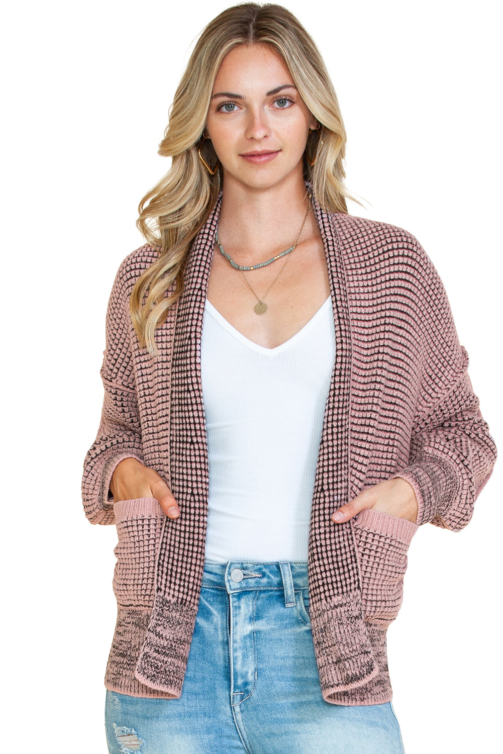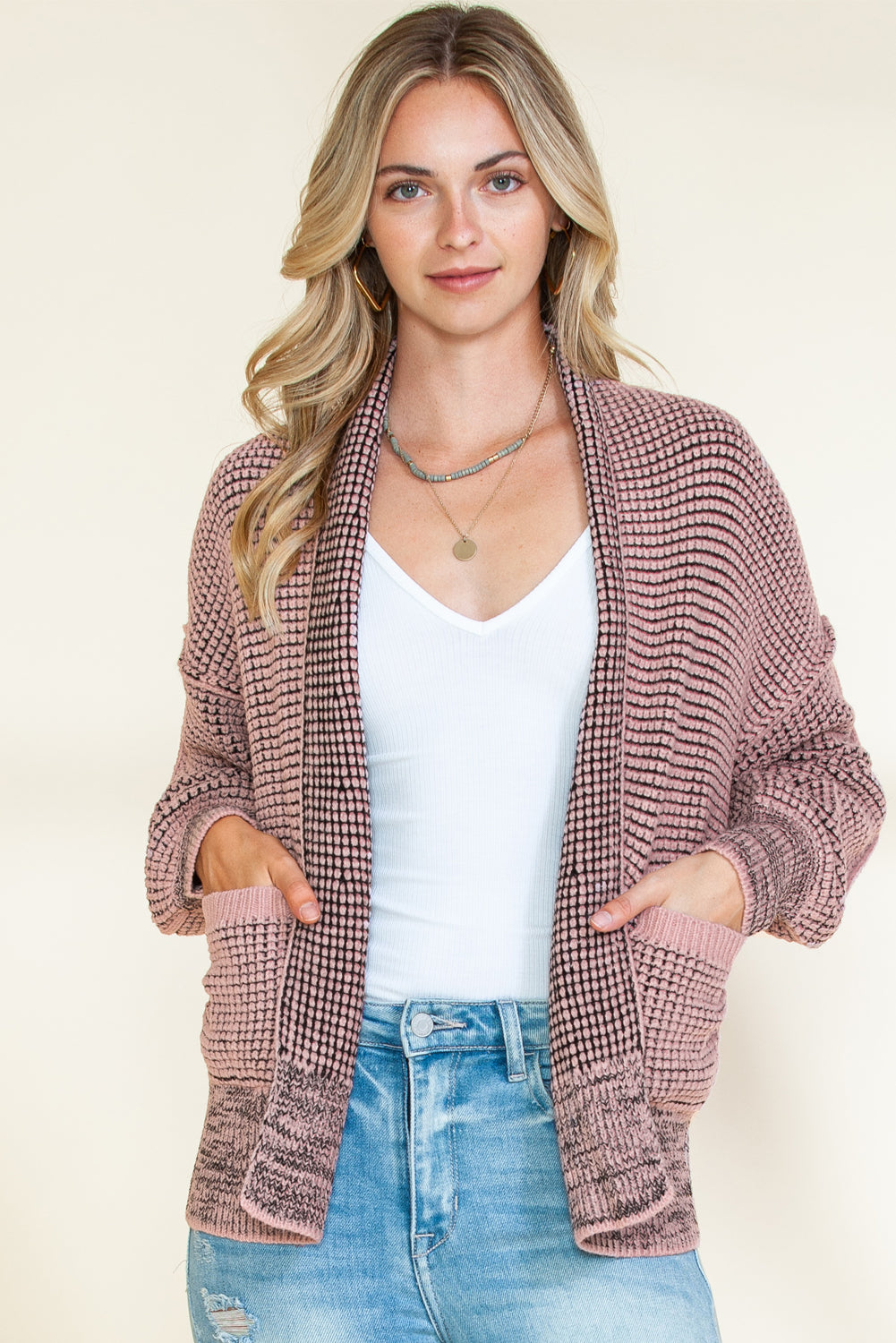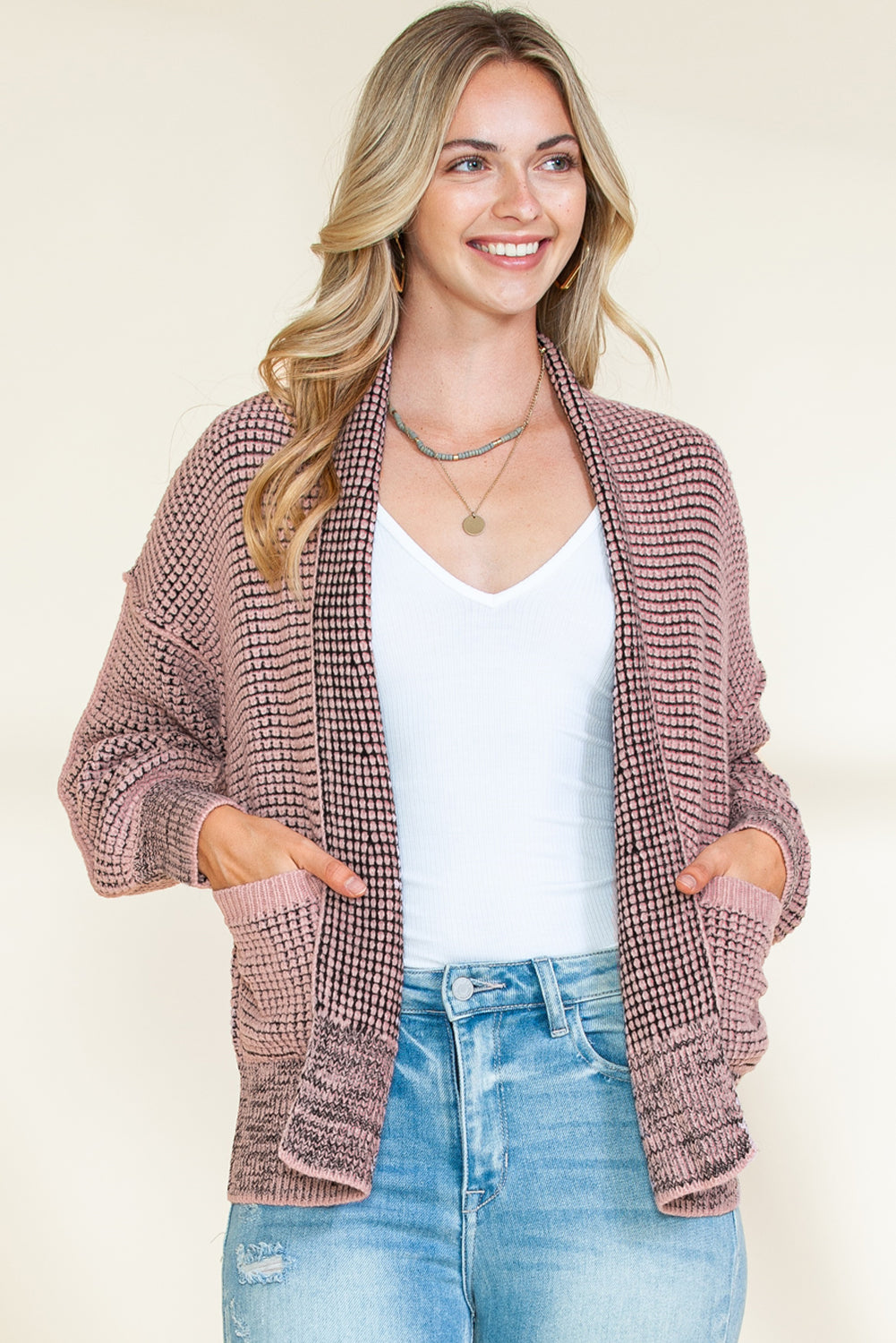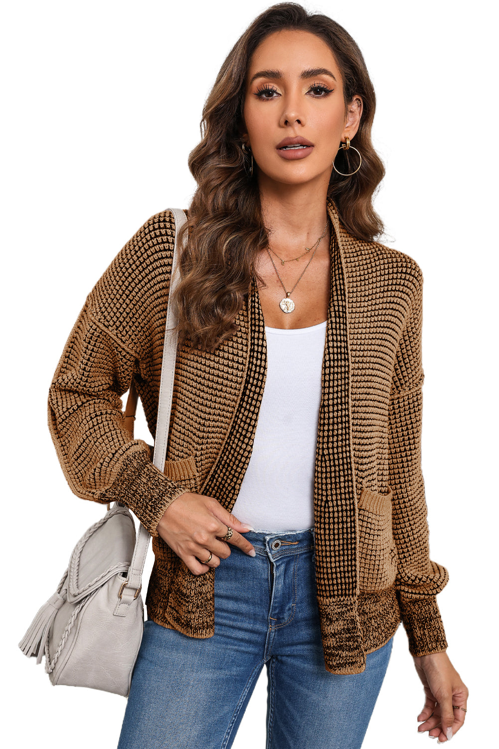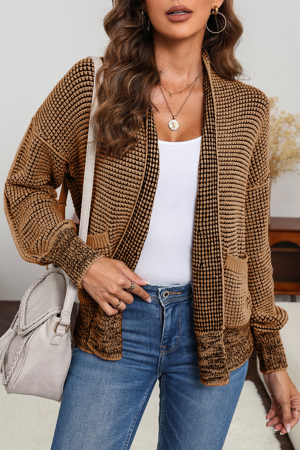 Apricot Chunky Knit Pockets Drop Sleeve Cardigan