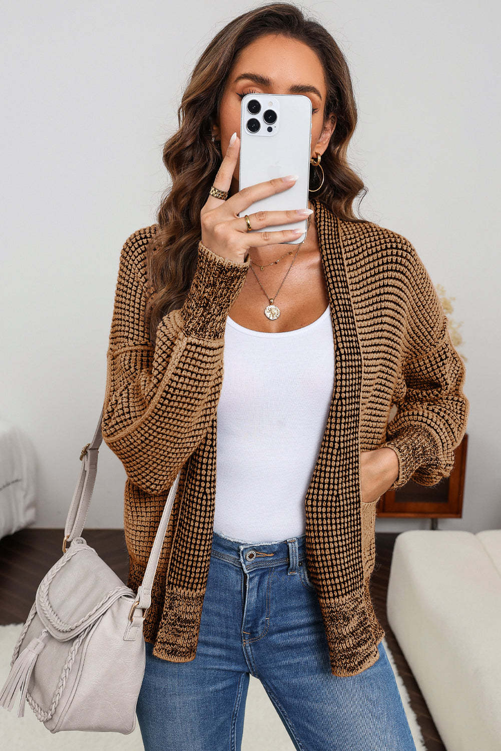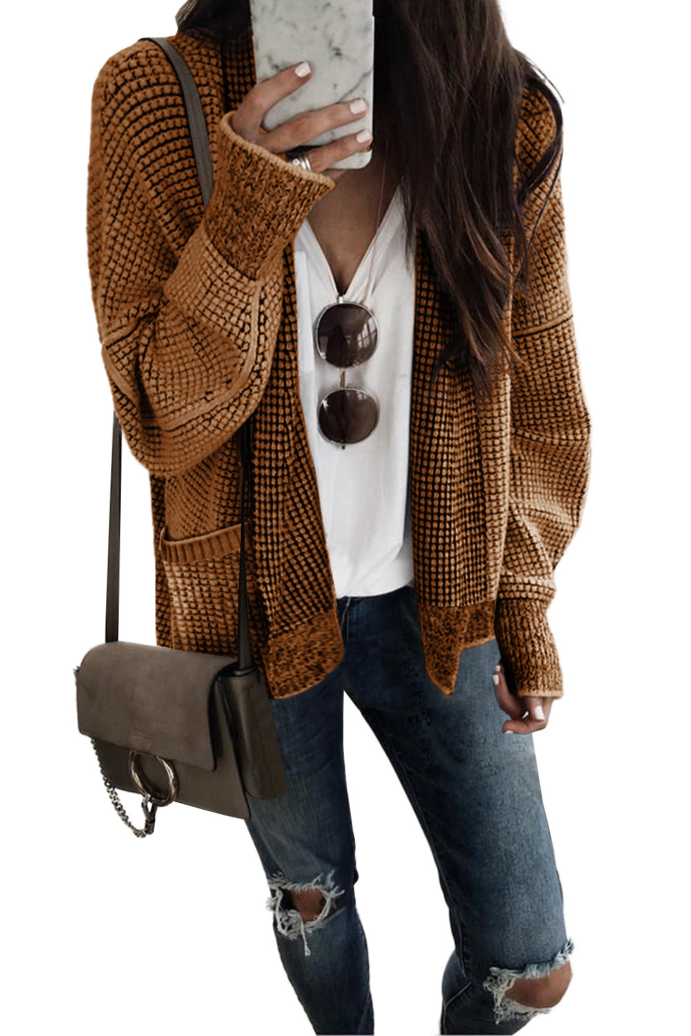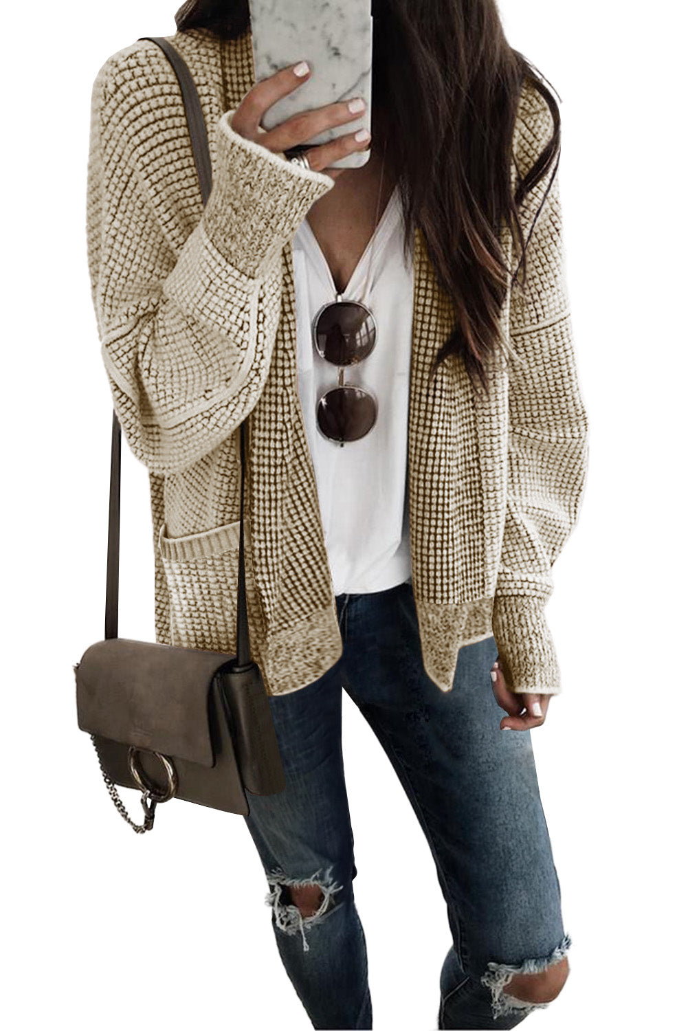 Indulge in the luxurious comfort and style of our Apricot Cozy Comfort Chunky Knit Drop Sleeve Cardigan, a must-have for your fall and winter wardrobe