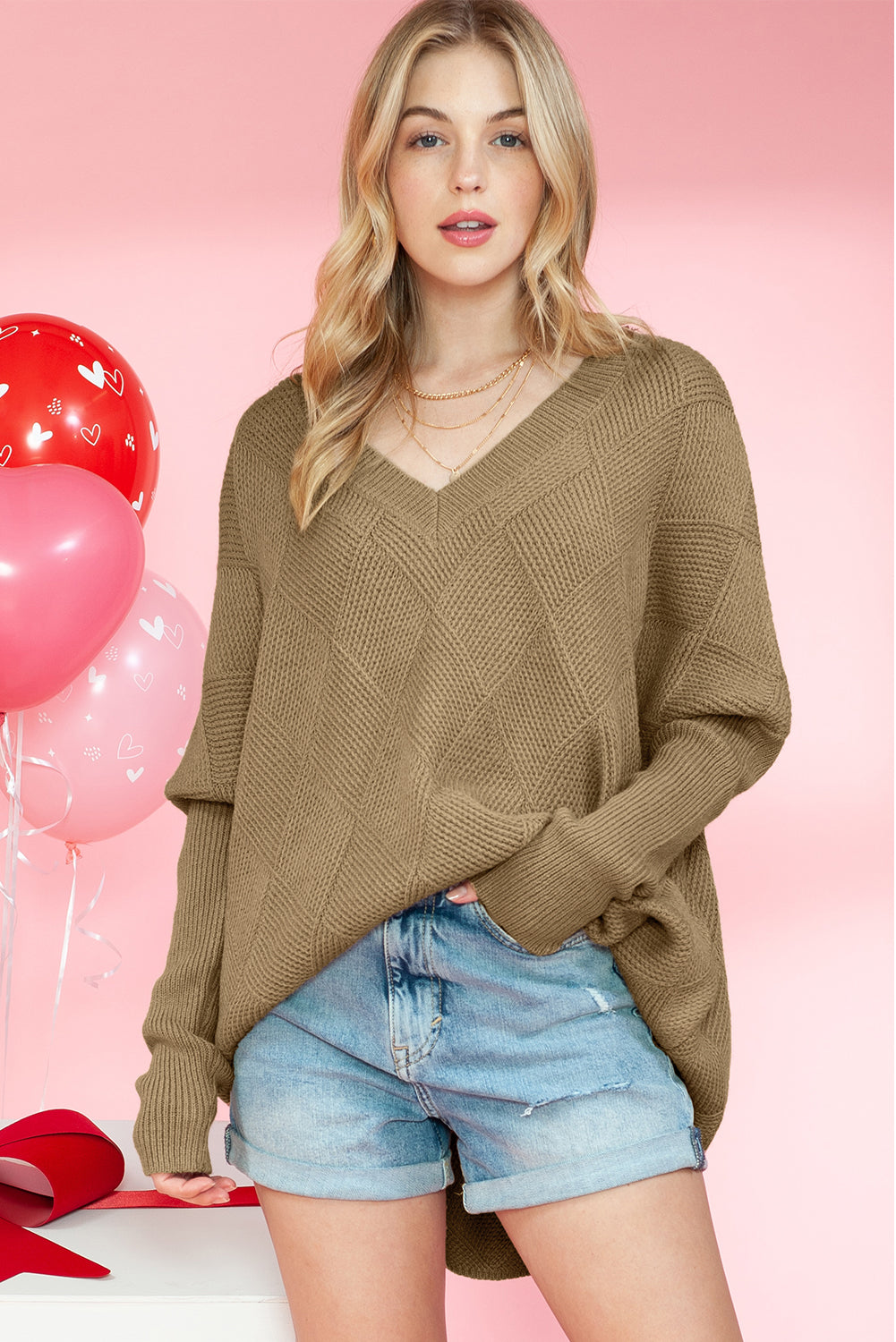 - The V-neckline of this sweater adds a touch of femininity and creates a flattering neckline.