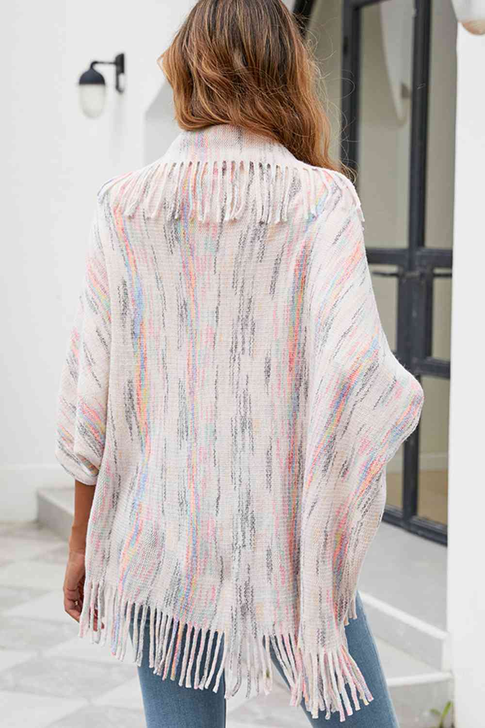 Fringe Detail Printed Poncho