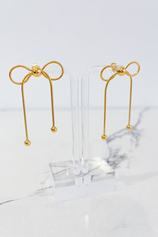 Elevate your style game this year with these fabulous gold dangle bow earrings! Perfect for a birthday party, date night, valentines day or just to show off your every day style!