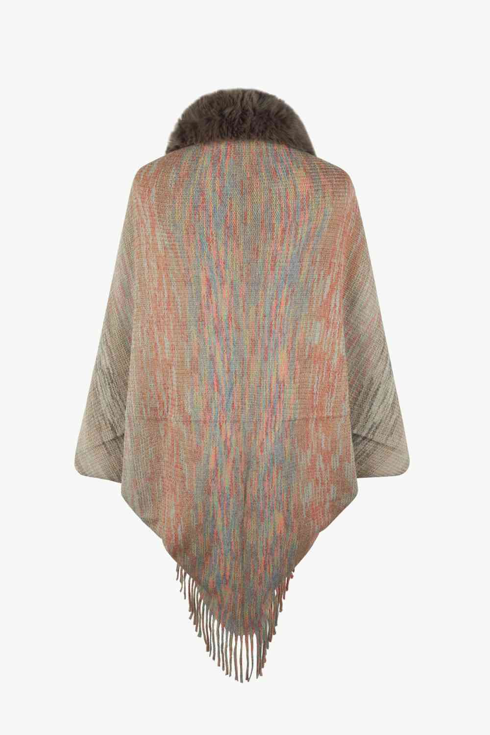 Open Front Fringe Hem Poncho in multicolor, Fringe