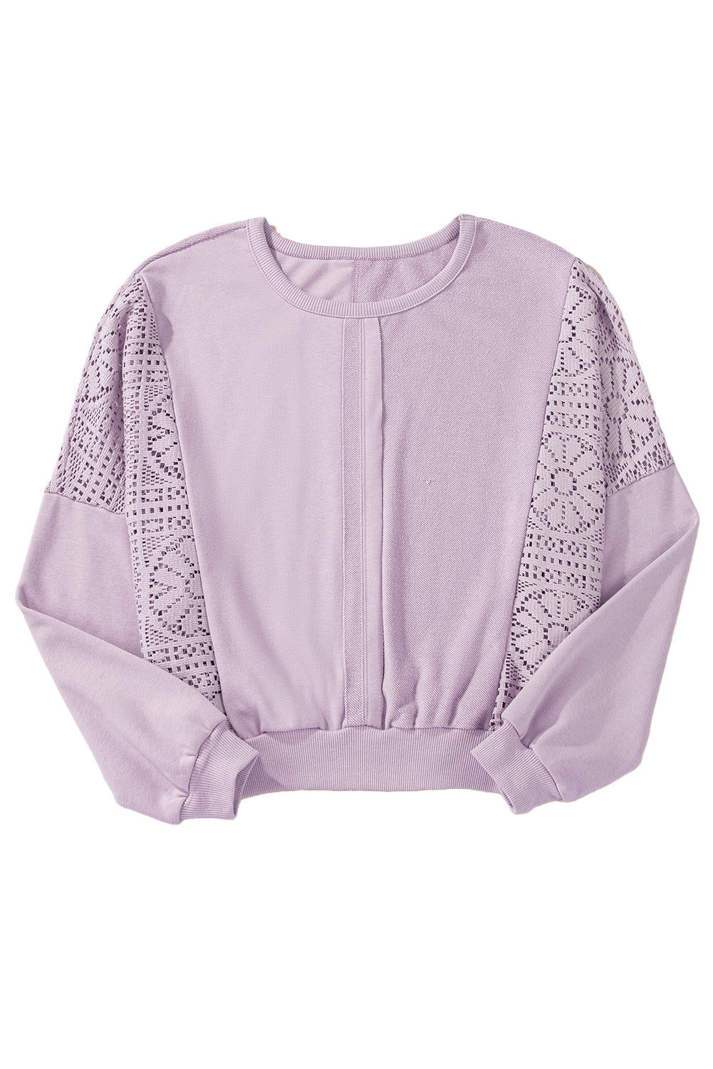 Parchment Crochet Patchwork Exposed Seam Ribbed Trim Sweatshirt