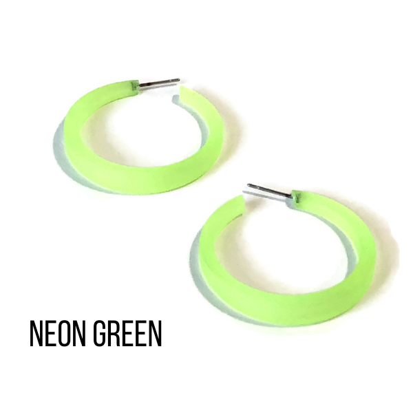 Earrings are made with new & uncirculated, vintage lucite parts that were made in the US in the 1960's - early 80's. We hand-set them with surgical steel earring posts and they have sturdy surgical steel/acrylic backings on them as well. Light-weight & fun to wear.