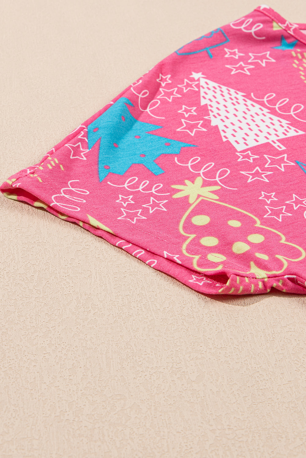 Red Christmas Tree Print V Neck Tee and Pants Loungewear Set