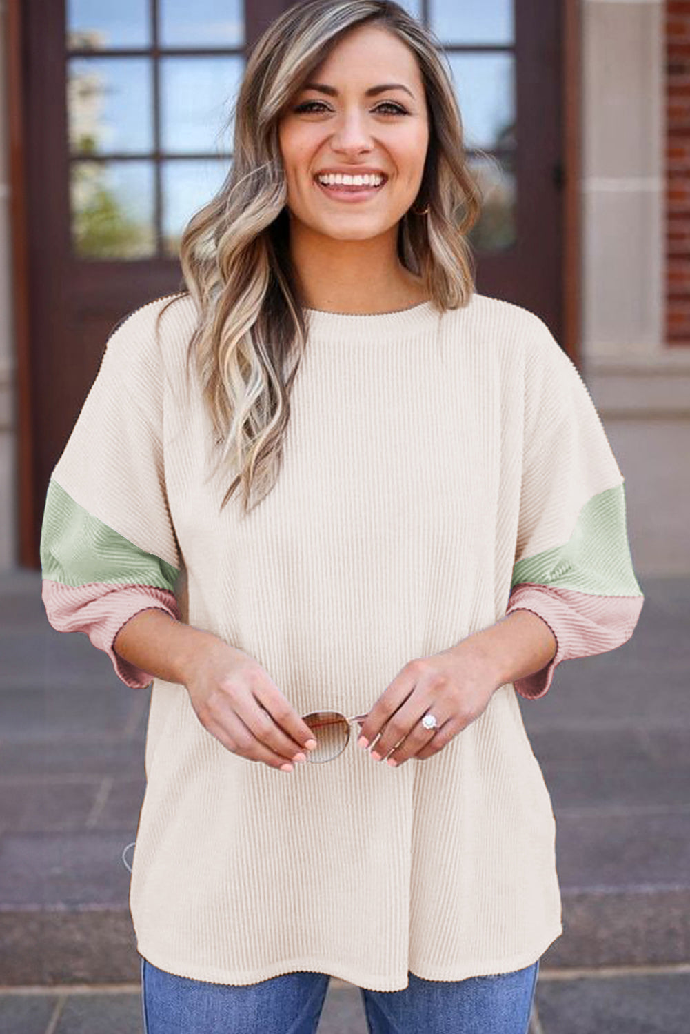 - It has drop sleeves, which are characterized by a relaxed and slightly oversized fit, creating a stylish and effortless look.
